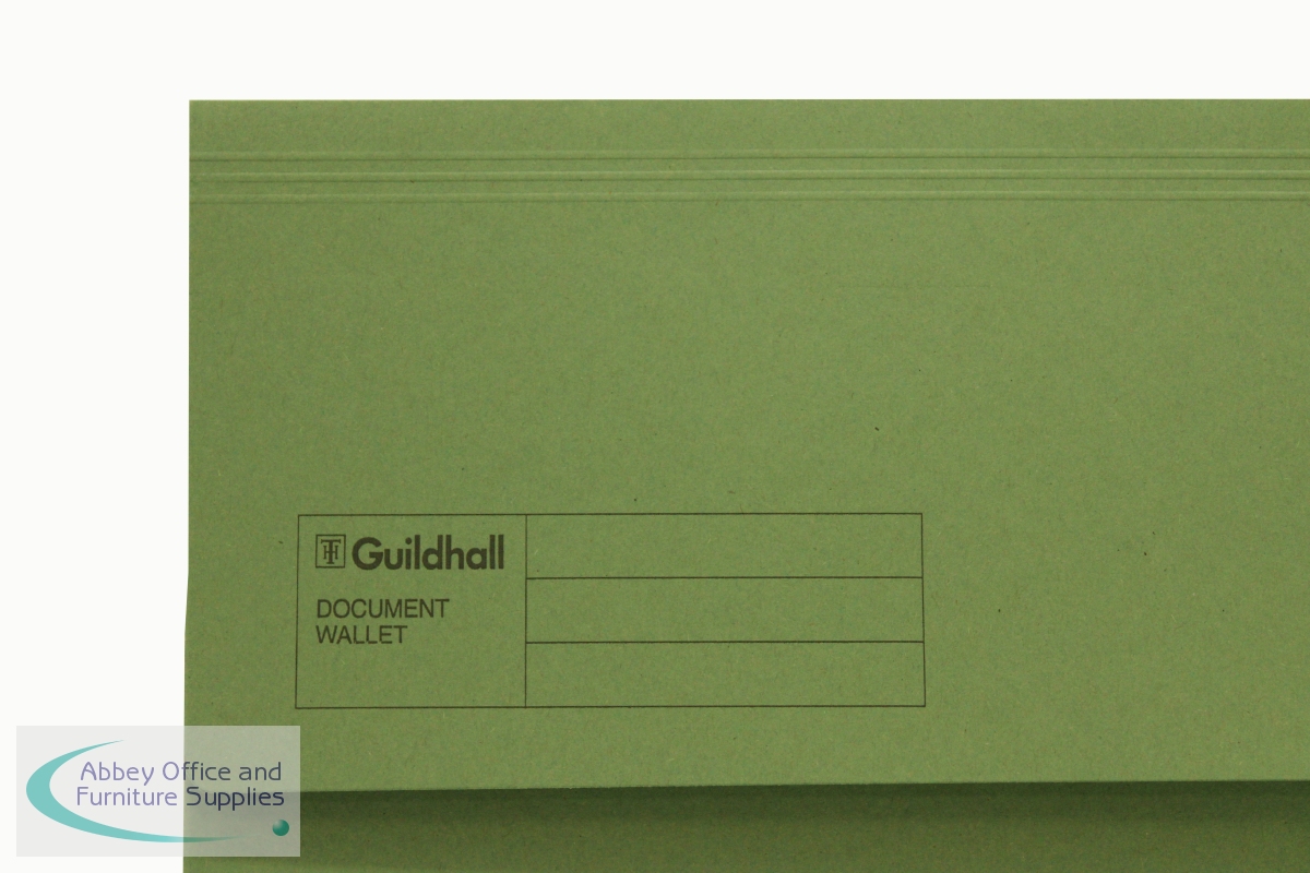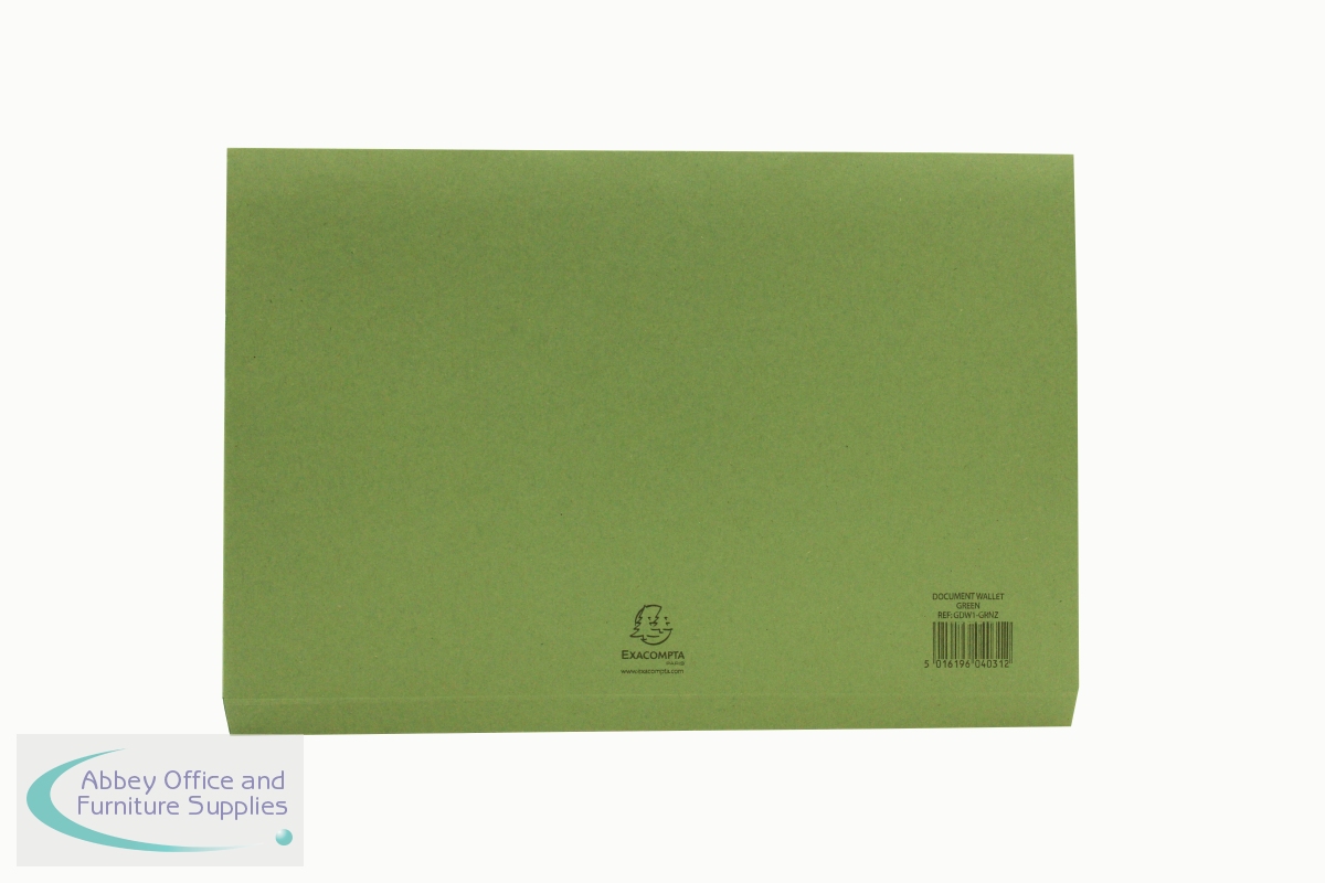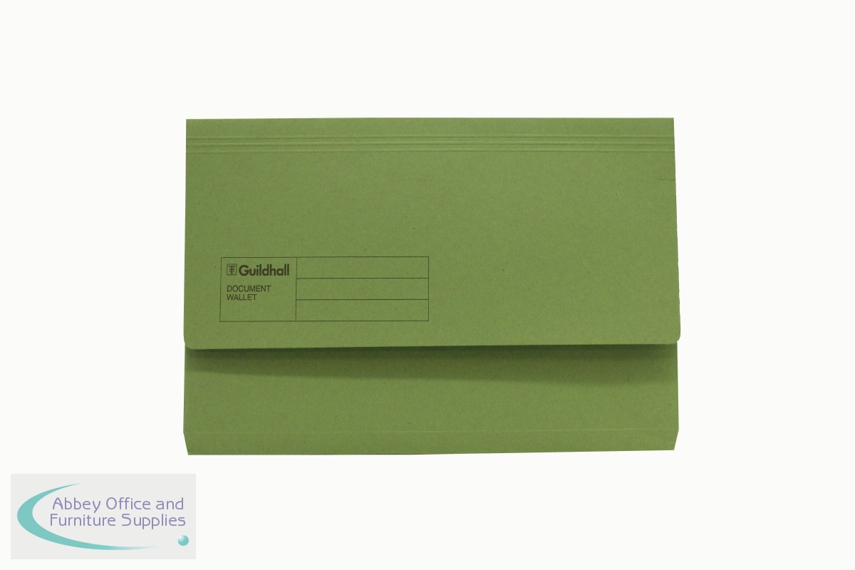 This handy Exacompta Guildhall document wallet is made from strong 285gsm manilla and is ideal for home, office or classroom filing. The wallet has a 32mm gusset and can hold up to 180 sheets of A4 or foolscap paper. This pack contains 50 green wallets, ideal for colour coordinated filing.