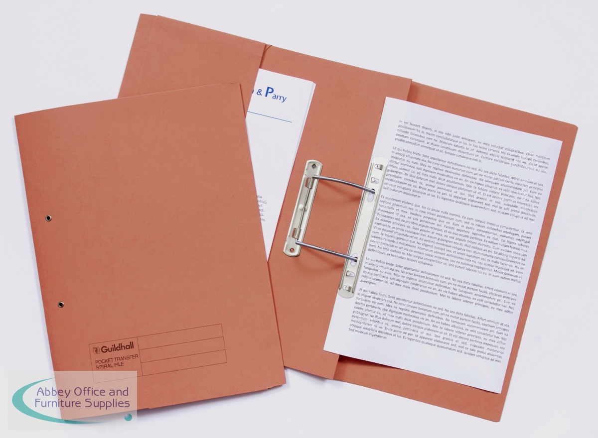 GH23037 - Exacompta Guildhall Heavyweight Transfer Spiral Pocket File Foolscap Orange (Pack of 25) 211/6004