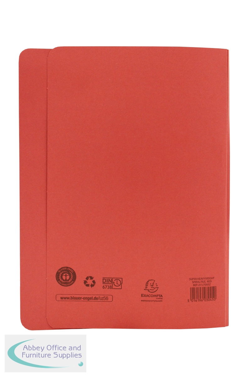 This Exacompta Guildhall spiral pocket file is made from durable, heavyweight 420gsm manilla and can hold up to 380 sheets of 80gsm A4 or foolscap paper. The file features a secure spiral mechanism for punched papers. This pack contains 25 red foolscap files, ideal for colour coordinated filing.