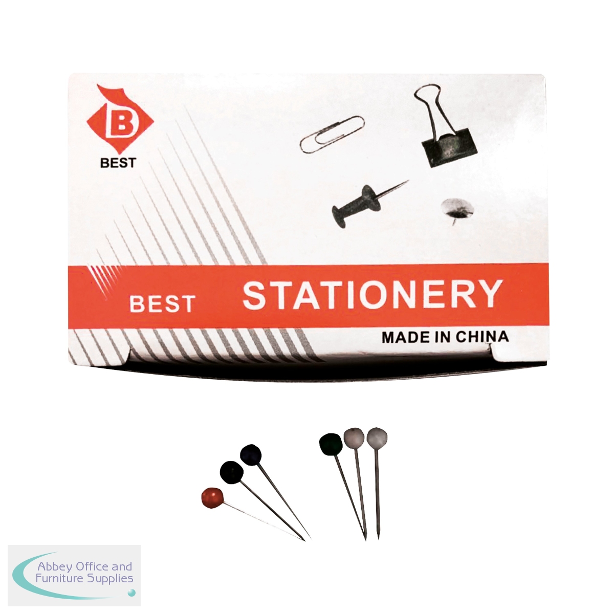 These high quality map pins feature a 4.5mm spherical plastic head and hardened steel shaft, which is ideal for marking key areas on maps and plans, or hanging posters, technical drawings, notices and other documents. This pack contains 100 pins in assorted colours.