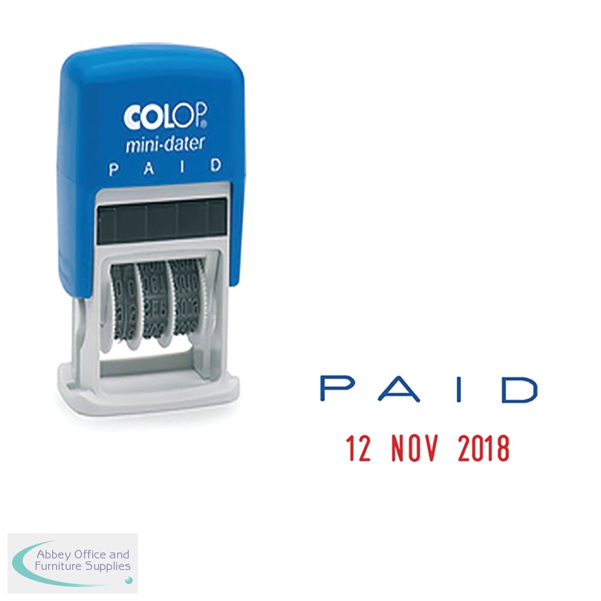 This handy, portable COLOP mini text and date stamp combines a 4.0mm date with the word PAID for organised records and filing. The stamp prints an impression size of 25 x 12mm with the text printing in blue and the date in red. Replacement stamp pads are available separately.
