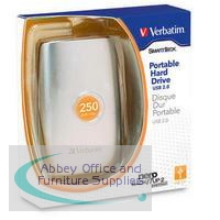 Verbatim 2.5'' Portable Hard Drive USB 2.0 250GB. Palm sized USB 2.0 portable hard drive is light weight (150gsm) making it easy to carry with you. Features USB 2.0 bus powered and requires no external power for operation simply plug G