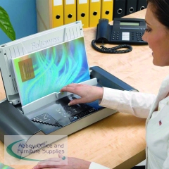 Binding up to 300 sheets of paper, the Helios 30 Thermal Binder is a versatile device for creating bound documents. Just switch it on and it's ready to bind within four minutes - the simple one step operation makes it easy to bind your documents. A clever cooling rack at the rear provides a safe place to store your documents after binding. With a heating element, safety is important: the Helios features a heat guard that prevents injury when binding.