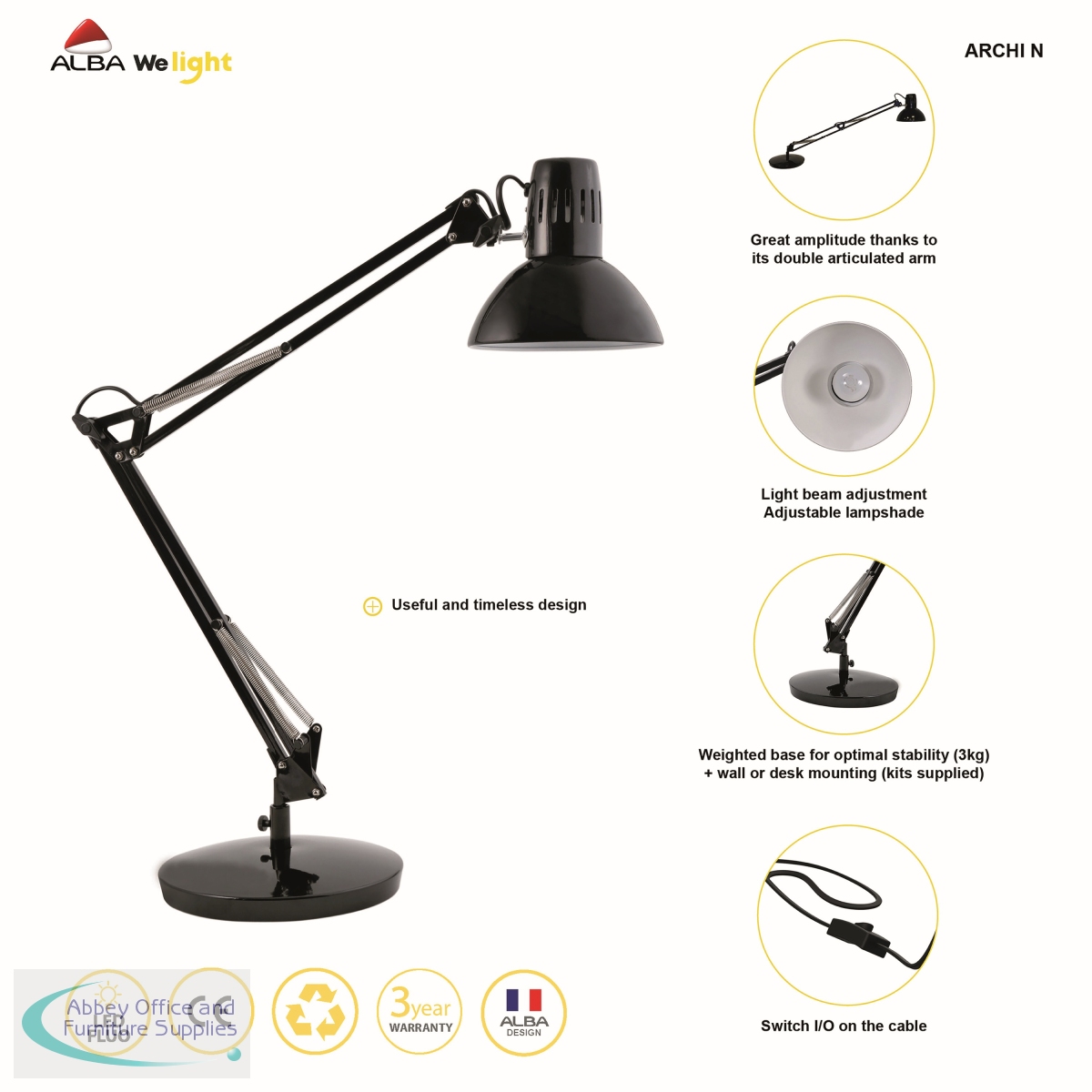[ Alba; Office Environment; Lamps; Desk; OEM Code ARCHI N UK; EAN 03129710008612; VOW Code ALB00861 ]