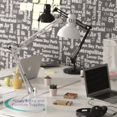 Featuring a flexible articulated arm, this Alba Architect desk lamp is perfect for illuminating your work at any angle. Manufactured in a contemporary black, the fully manoeuvrable arm has the ability to stand or be clamped to a desk, ensuring it can be used in any workspace. Compatible with E27 bulbs, available separately.