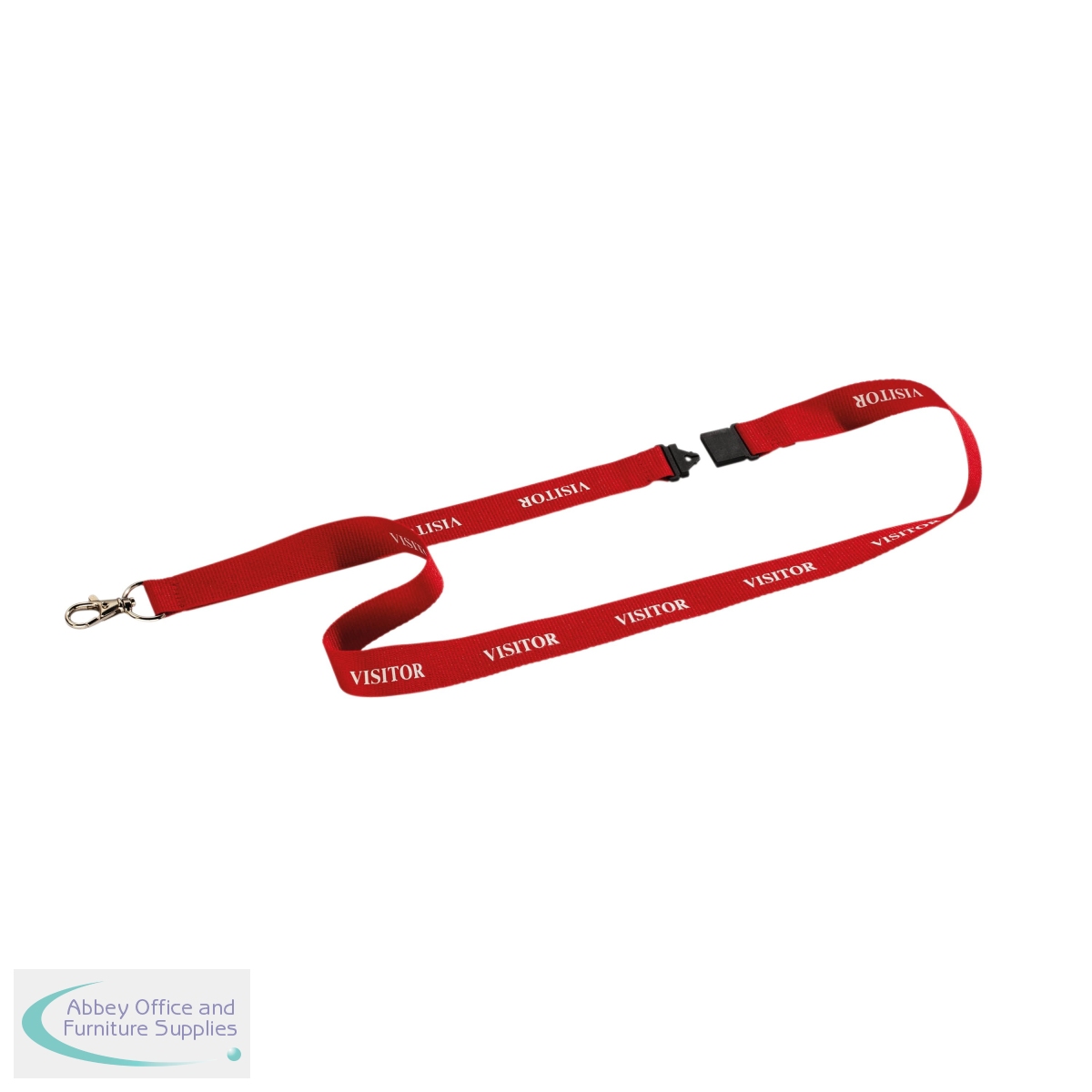 DB90918 - Durable Soft Textile VISITOR Lanyard with Clip and Breakaway Red (Pack of 10) 823803