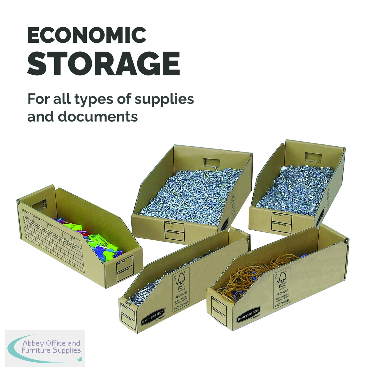 Provide economical storage around your home or office for all types of components, using the Bankers Box Earth Series Parts Bin. Each parts bin features a large labelling area for easy identification of contents at a glance, leaving you free to organise and sort your filing system quickly and easily. These parts bins are environmentally friendly and are manufactured 100% recycled materials.