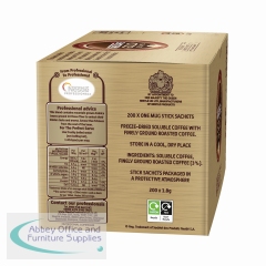 Nescafe One Cup Sachets each contain just the right amount for a delicious cup of morning or afternoon coffee. Simply empty the sachet into a cup, add hot water and milk or sugar to taste, then stir. Nescafe Gold Blend is made from mountain-grown Arabica beans, ground 10 times finer to unlock their hidden taste and rich aroma. Carefully selected, medium-roasted and freeze-dried to lock in flavour, this simple to make instant coffee has a full and delicious taste. Intensity 7. Ideal for catering, meeting rooms and breakout areas. Nescafe plan work with coffee farmers to support them in through providing higher-yielding, climate-resistant crops, protecting soil health and protect the future of coffee farming for everyone. This pack contains 200 sticks.