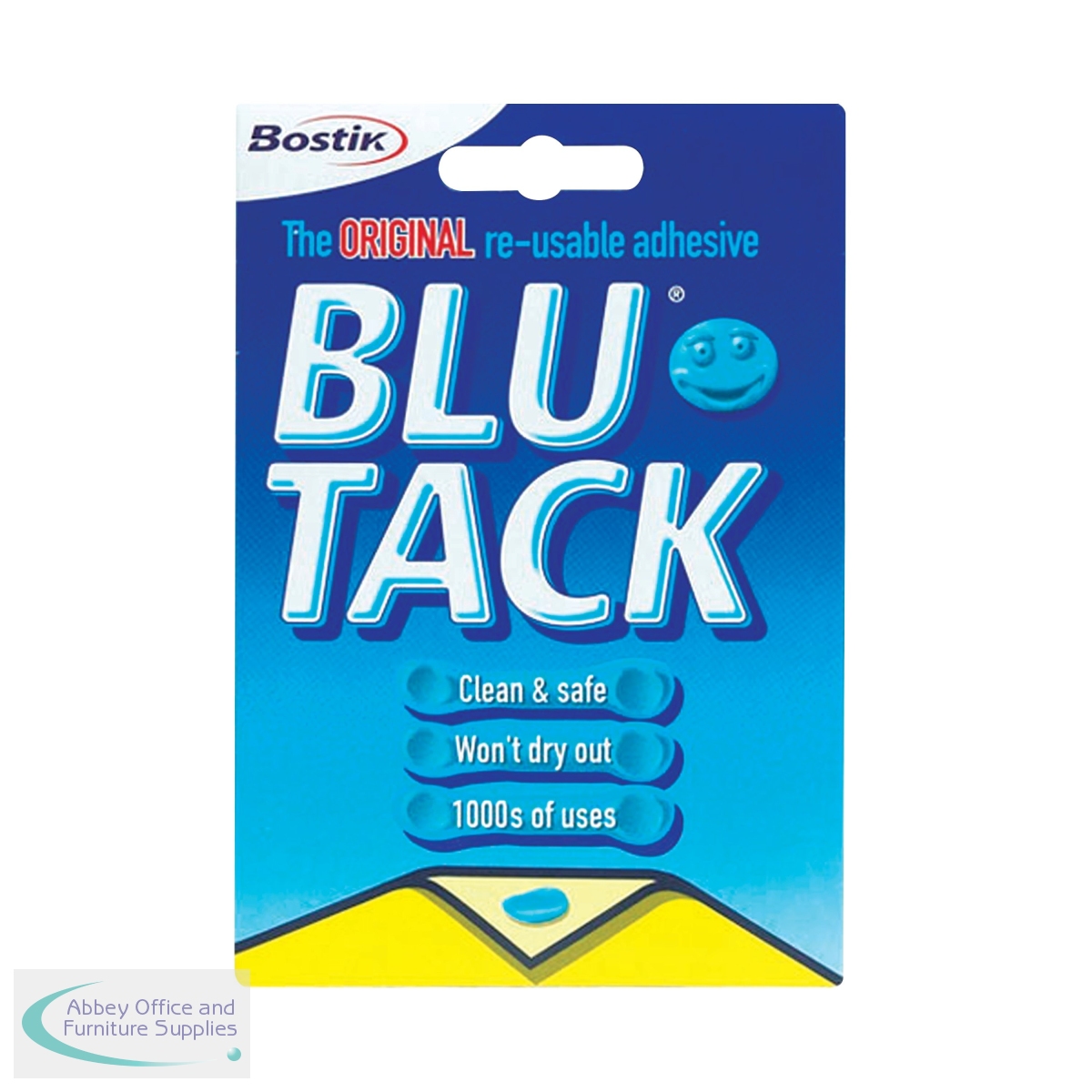 Supplied in a 60g Handy Pack, Bostik Blu-Tack is the original reusable adhesive. Pinch off a small piece and apply it to almost any non-porous surface: painted walls, vinyl-coated wallpaper, glass or metal. You can hang up paper posters, laminated signs or small objects easily. Or use it to pick up small and fiddly items like screws or pins, affix phones and stationery to desks, or remove lint from clothes.