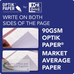 This professional Black n' Red A5 notebook contains 140 pages of quality 90gsm Optik paper, which is designed for minimum ink bleed through. The pages are ruled for neat note-taking and perforated for easy removal. The wire binding allows the notebook to lie flat for ease of use and it also features matte laminated, hardback covers. This pack contains 5 A5 notebooks.