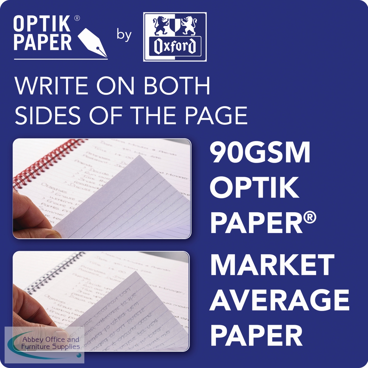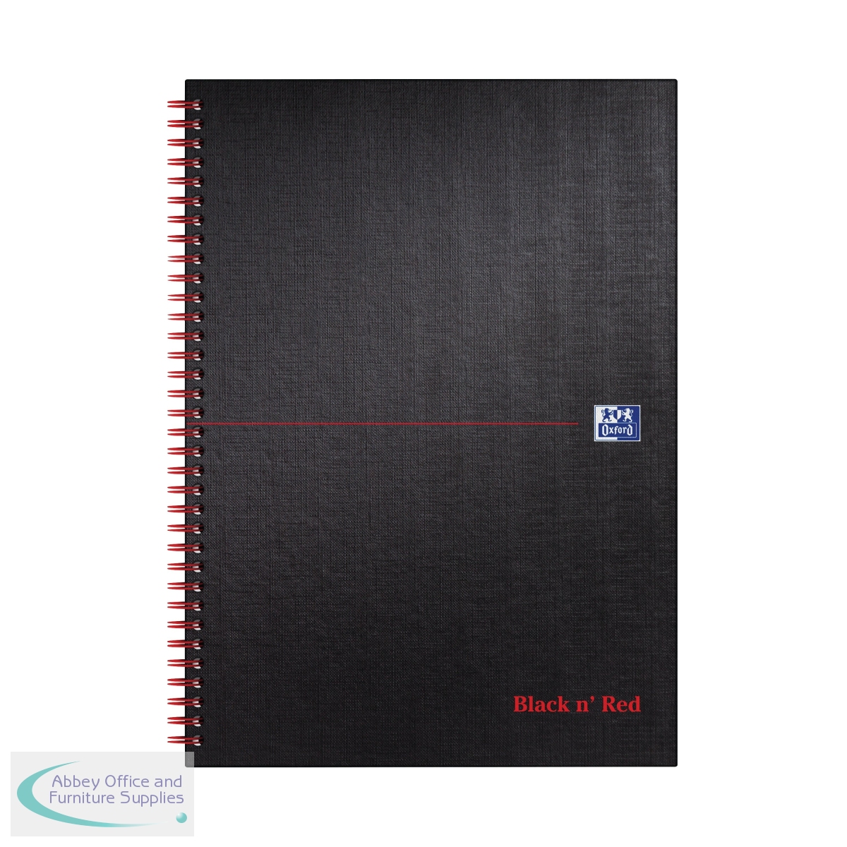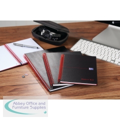 This professional Black n' Red A4 notebook contains 140 pages of quality 90gsm Optik paper, which is designed for minimum ink bleed through. The pages are ruled for neat note-taking and perforated for easy removal. The wire binding allows the notebook to lie flat for ease of use and the notebook also features matte laminated hardback covers. This pack contains 5 A4 notebooks.