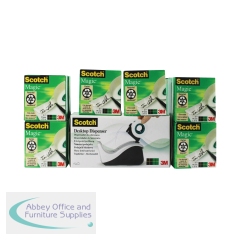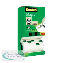 Scotch Magic Tape is a long lasting, solvent free tape that is designed not to yellow or dry out with age. Virtually invisible when applied, the tape is great for repairs to torn paper, or wrapping packages attractively. The matte surface can also be written on, which is ideal for adding labels or notices to parcels. This pack contains 16 rolls measuring 19mm x 33m and comes with a free tape dispenser.