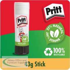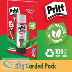 This solvent-free formula offers a strong and long-lasting adhesion while guaranteeing a solid initial tack and low paper wrinkling. Easy to apply, this high quality glue is made with 97% natural ingredients, solvent free and is recyclable. Supplied in a value pack containing 5 sticks, Pritt Stick 43g is ideal for gluing papers and documents. This pack contains 5 x 43g glue sticks.