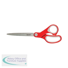 These premium Scotch scissors feature sharp, hardened stainless steel blades for enhanced cutting performance. Designed for both left and right handed use, the 180mm scissors also feature comfortable, red soft grip handles and have a blade length of 90mm. This pack contains 1 pair of scissors for home or office use.