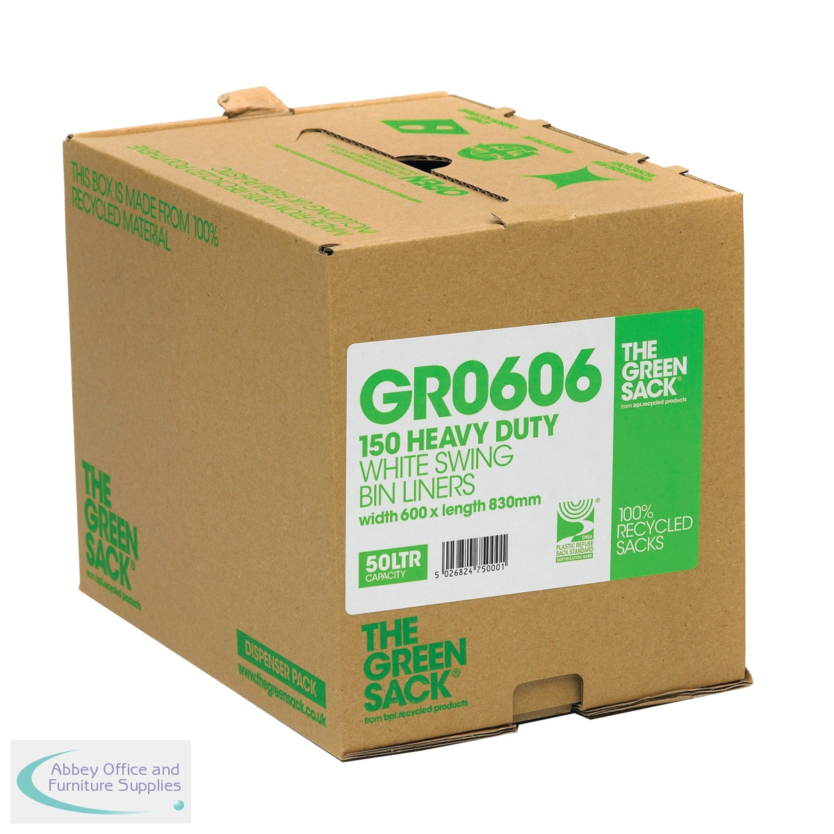 The Green Sack Swing Bin Liner is a white, heavy duty refuse sack made from 100% recycled material in a handy dispenser box. Ideal for janitorial and office use, or to have around the home, these white sacks are incredibly popular and are durable, strong and designed to withstand heavy use. Ideally suited for swing bins, they can be used as a general waste sack, as they make a versatile and cost effective refuse removal solution.
