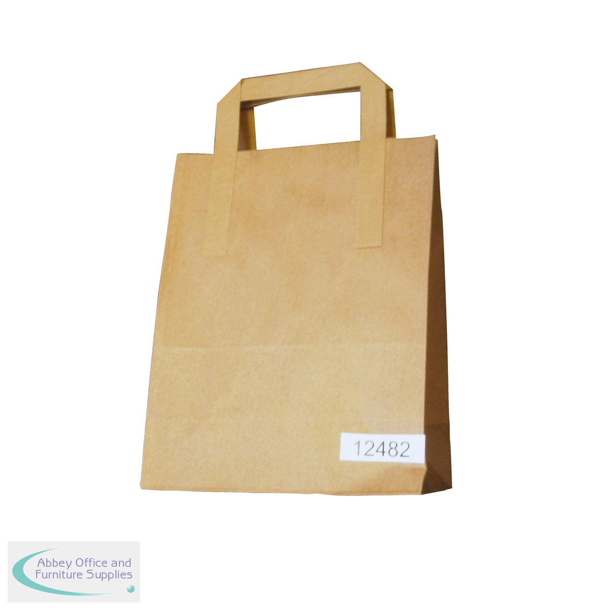 Ideal for takeaway restaurants, shops, cafes and more, these environmentally friendly paper takeaway bags are 100% recyclable. The brown paper bags are durable with a reinforced handle for easy transportation. This bulk pack contains 250 plain paper bags measuring W215 x H255 x D115mm. Approximate size +/- 5% difference due to manufacturing tolerance.