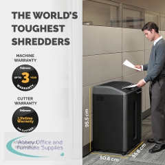 Designed for heavy use by up to 20 users, the Fellowes 425Ci Cross-Cut Shredder is a capable office machine for keeping data safe. It shreds up to 28 sheets at once into tiny 4x30mm particles, making it significantly more difficult for thieves to reconstruct stolen documents. A large 121 litre bin means less time spent emptying out waste. The 425Ci also features an auto-oil mechanism to keep the cutters working smoothly and improve your shredder's longevity.
