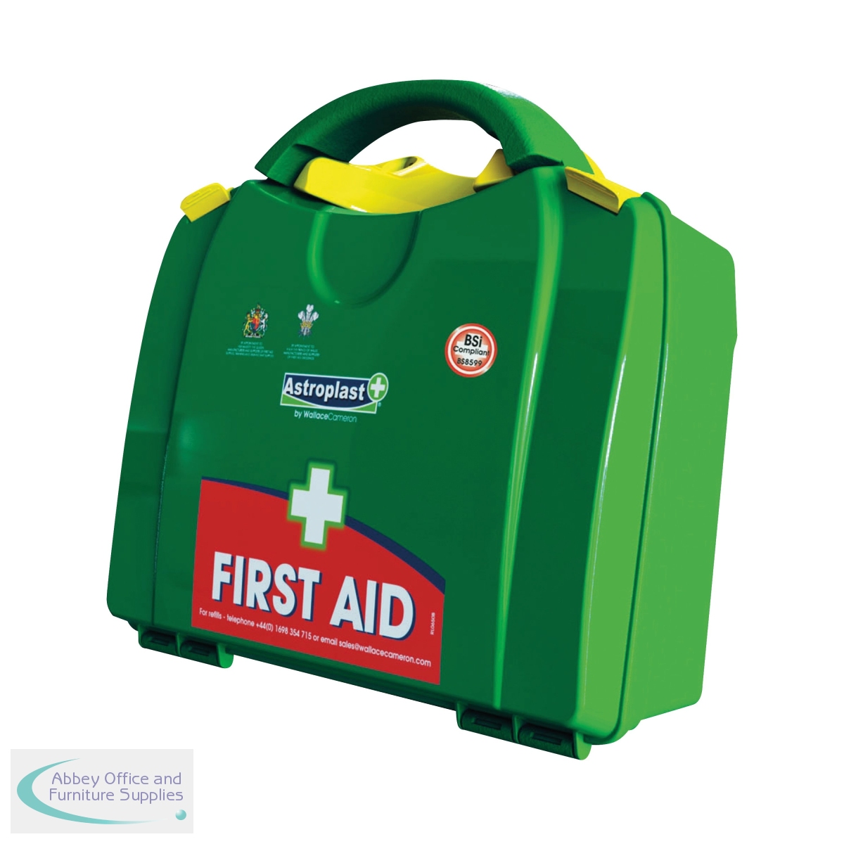 Containing everything you need in the event of an accident or emergency, this Wallace Cameron first aid kit is convenient and effective. Coming in a strong, plastic box it includes a range of bandages, dressings and plasters to help treat cuts, scrapes and other injuries. The box itself is green, making it highly visible and has a one clip opening for quick access as well as an integral carry handle, making it easily portable.