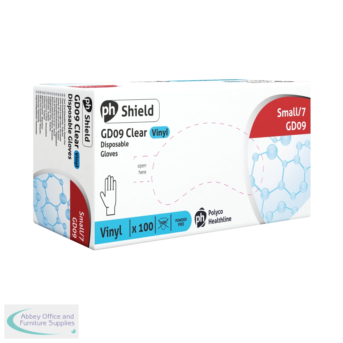 HEA00947 - Shield Vinyl Powder-Free Gloves Small Clear (Pack of 100) GD09 - S