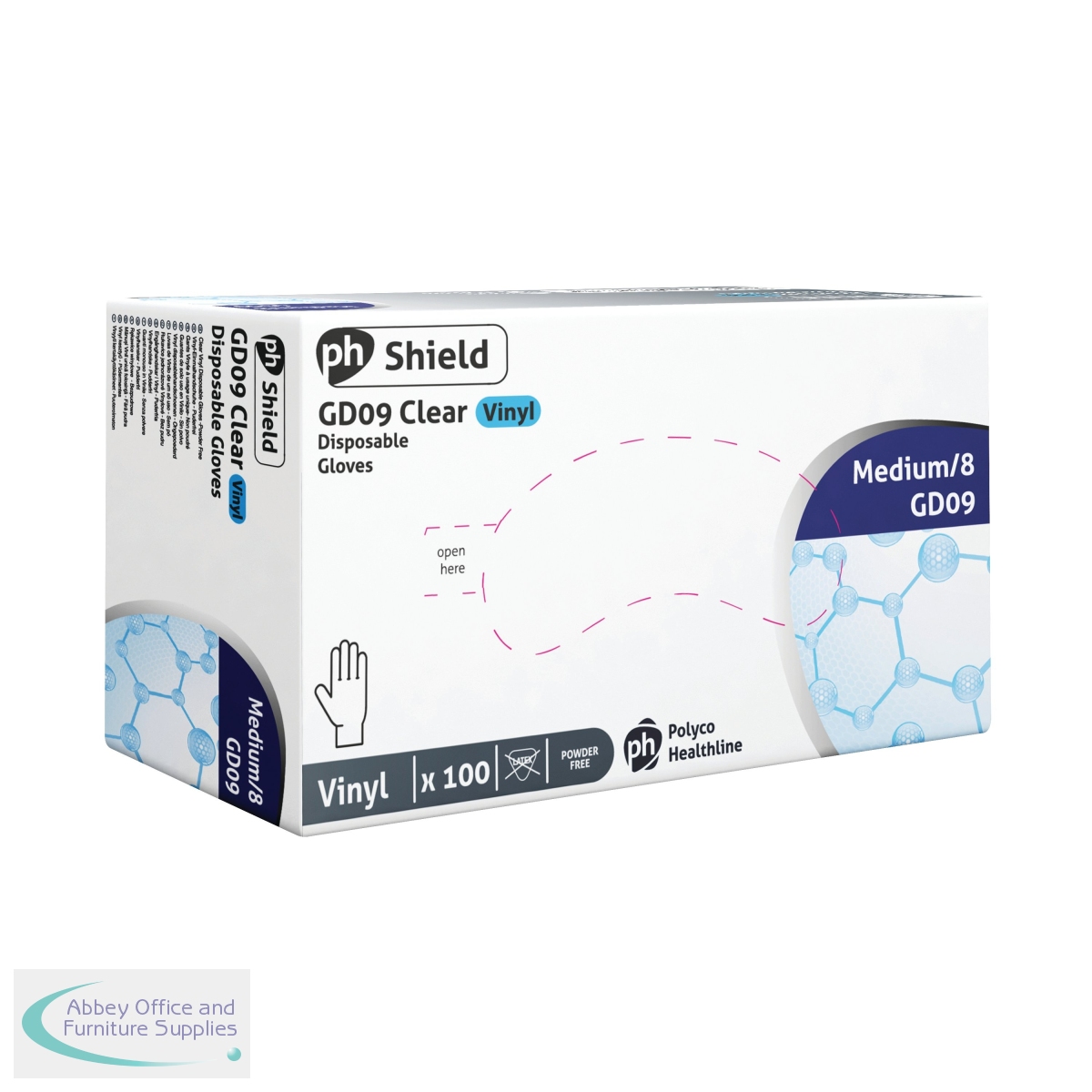 HEA00948 - Shield Powder-Free Vinyl Gloves Medium Clear (Pack of 100) GD09 - M