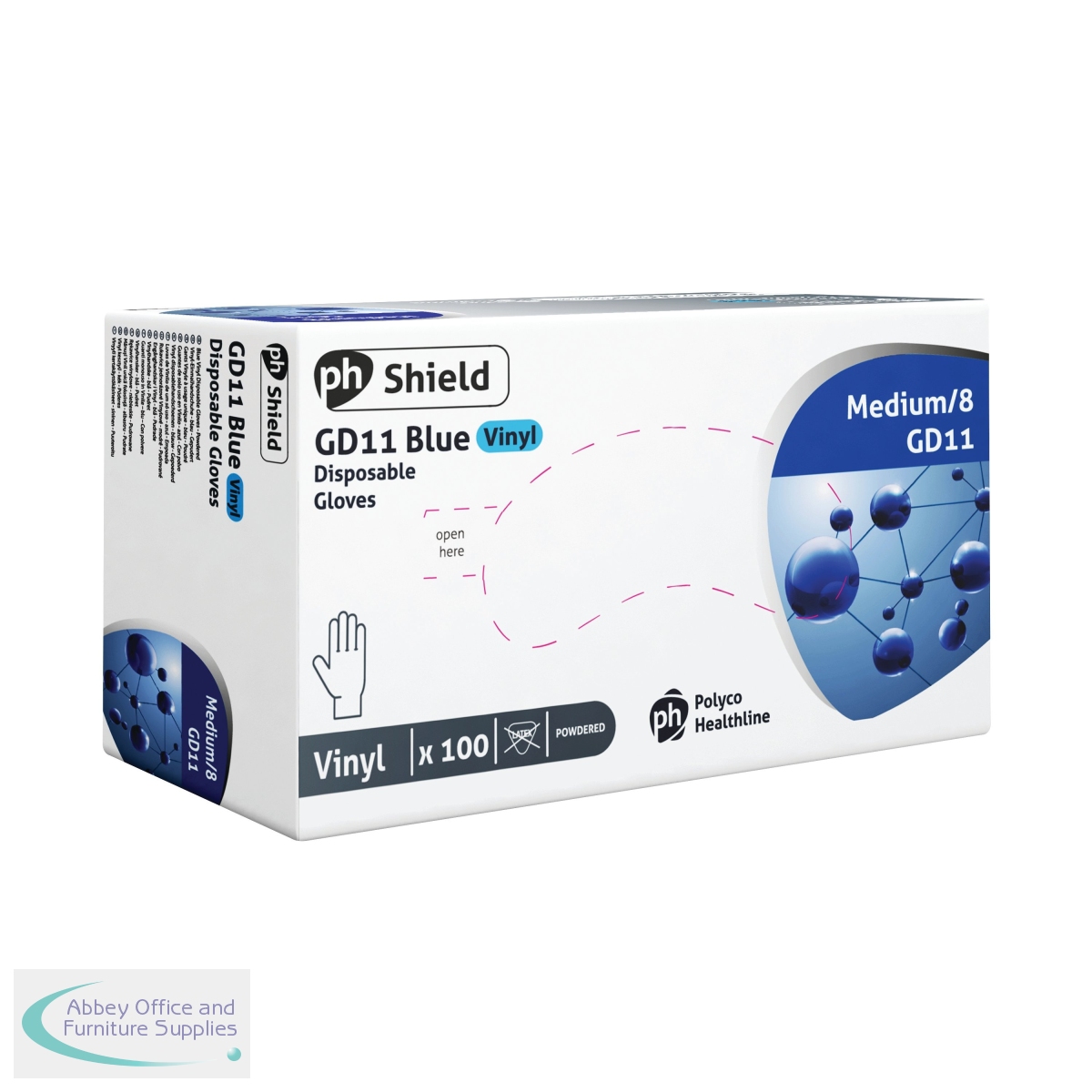 HEA00956 - Shield Powdered Vinyl Gloves Medium Blue (100 Pack) GD11