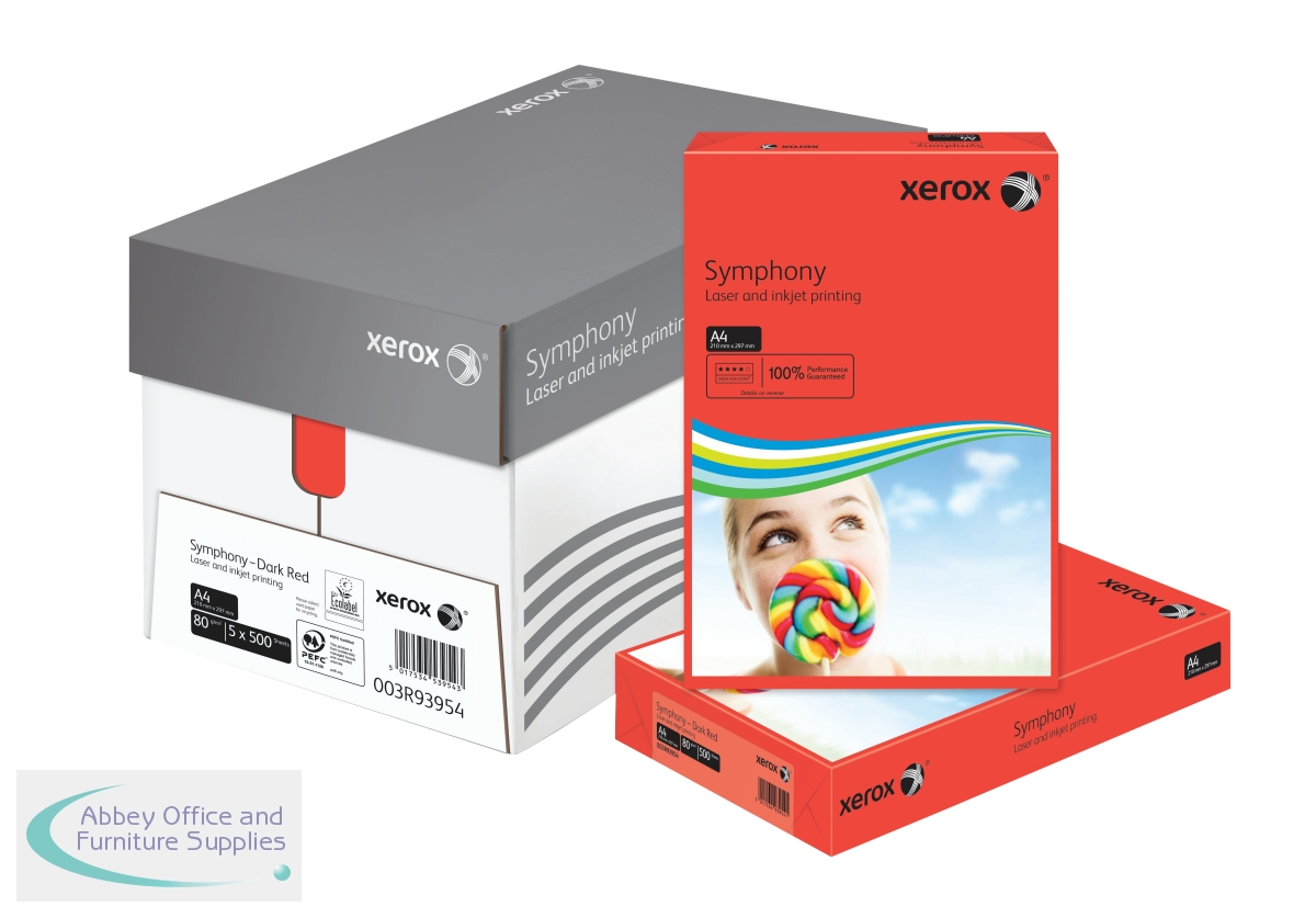 Looking to add some colour to your life? Xerox A4 Symphony dark red paper helps your documents stand out from the pack. Created according to the exacting standards applied to all Xerox products, it has the same smooth surface, printability and excellent opacity we have come to expect. Designed for high speed, high volume printing and compatible with all laser, inkjet and copier printers, this 80gsm paper is nothing less than the very best.