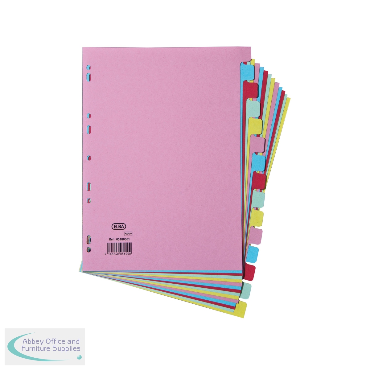 These environmentally friendly Elba 15 part dividers are made from 100% recycled 160gsm manilla and are multi-punched to fit into standard A4 ring binders and lever arch files. Ideal for filing and organising project work, reports, presentations and more, the multicoloured tabs can be either written or typed on for quick reference. This pack contains 1 set of A4 15 part dividers.