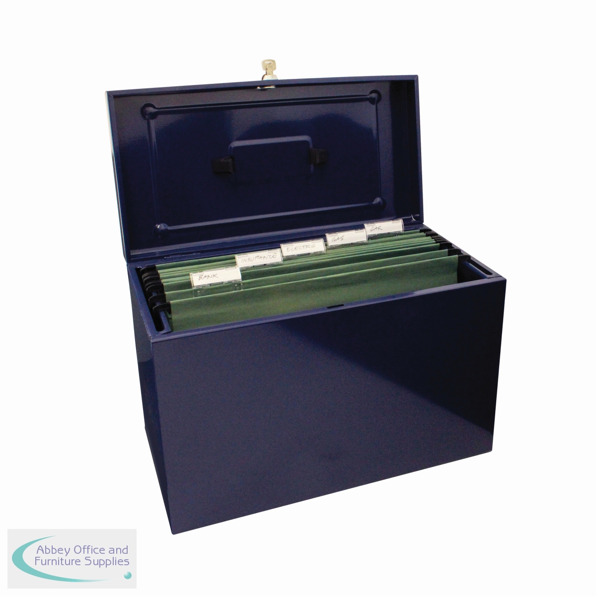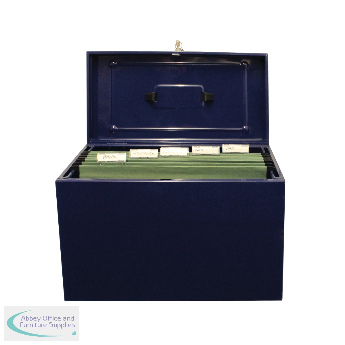 SG33056 - Cathedral Metal File Box Foolscap Home Office Blue HOBL