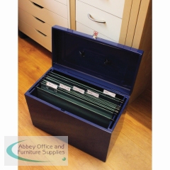 Safe and secure, the strong Cathedral Metal File Box is the ideal place to store important documents and sensitive information. These fully lockable file boxes are stackable for your convenience and come with two keys to reduce the amount of access. Featuring a recessed carry handle for easy transportation along with five suspension files to start your archiving system, this filing box is finished in a blue powder coating.