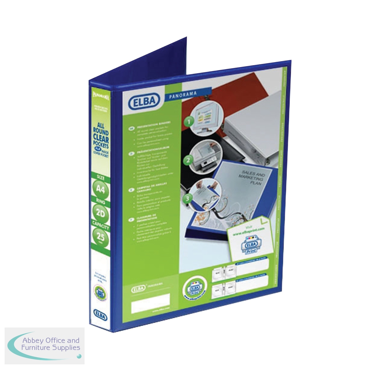 BX06512 - Elba Panorama 25mm 2 D-Ring Presentation Binder A4 Blue (6 Pack) 400008412