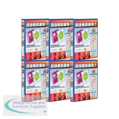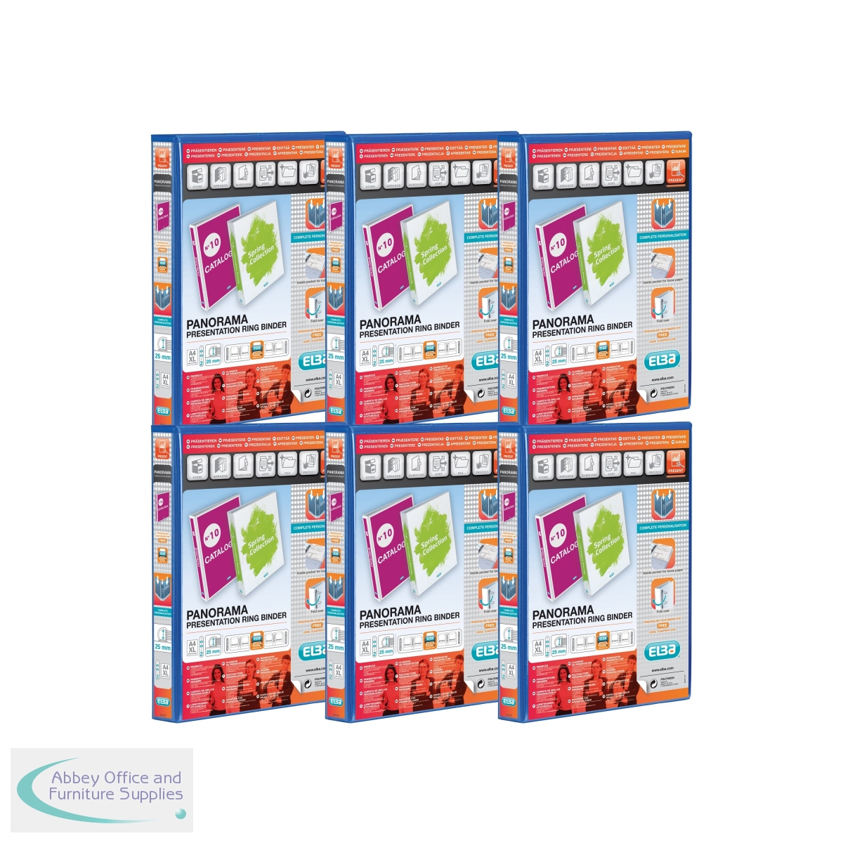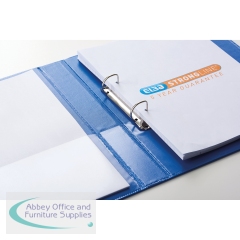 This premium quality Elba Panorama A4 presentation ring binder features clear pockets on the front, back and spine for complete personalisation. Made from hard wearing polypropylene covered board, this 25mm (250 sheets) binder features a 2 D-ring mechanism and is ideal for professional reports, presentations, projects and more. Binder has a 35mm spine width. This pack contains 6 blue ring binders.