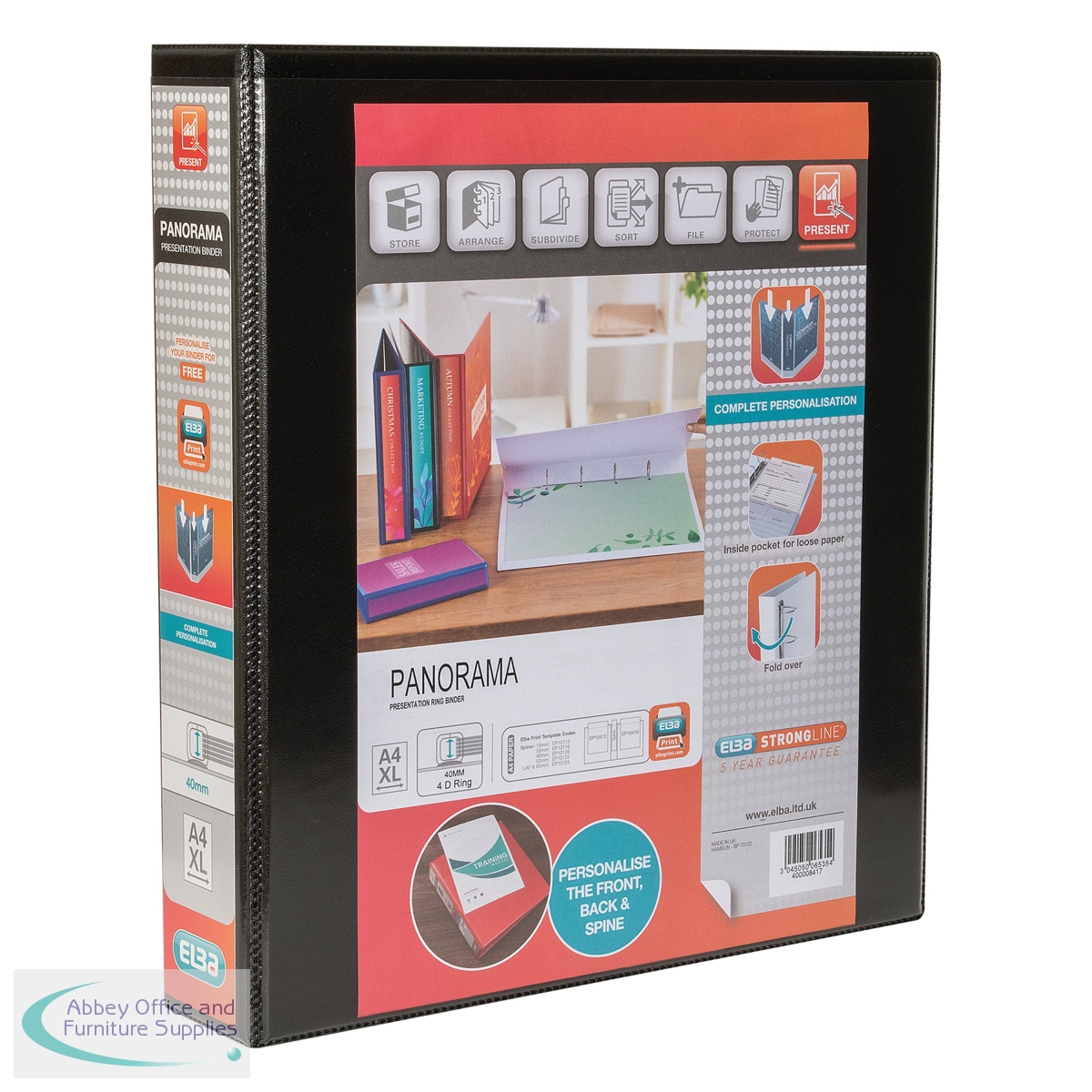 BX06536 - Elba Panorama 40mm 4 D-Ring Presentation Binder A4 Black (6 Pack) 400008417