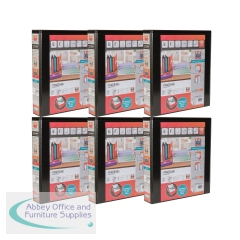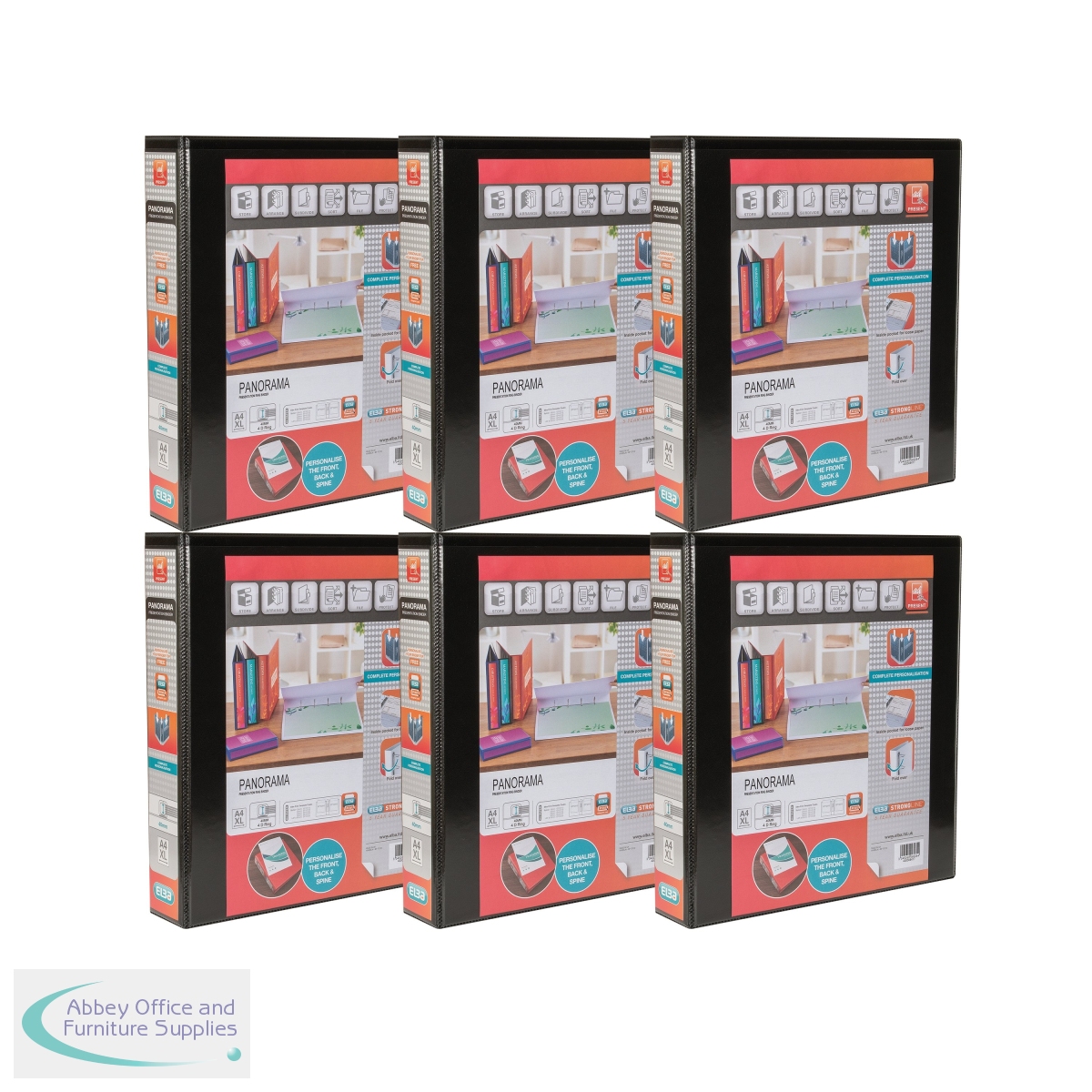 This premium quality Elba Panorama A4 presentation ring binder features clear pockets on the front, back and spine for complete personalisation. Made from hard wearing polypropylene covered board, this 40mm (400 sheet) capacity binder features a 4 D-ring mechanism and is ideal for professional reports, presentations, projects and more. This pack contains 6 black ring binders.