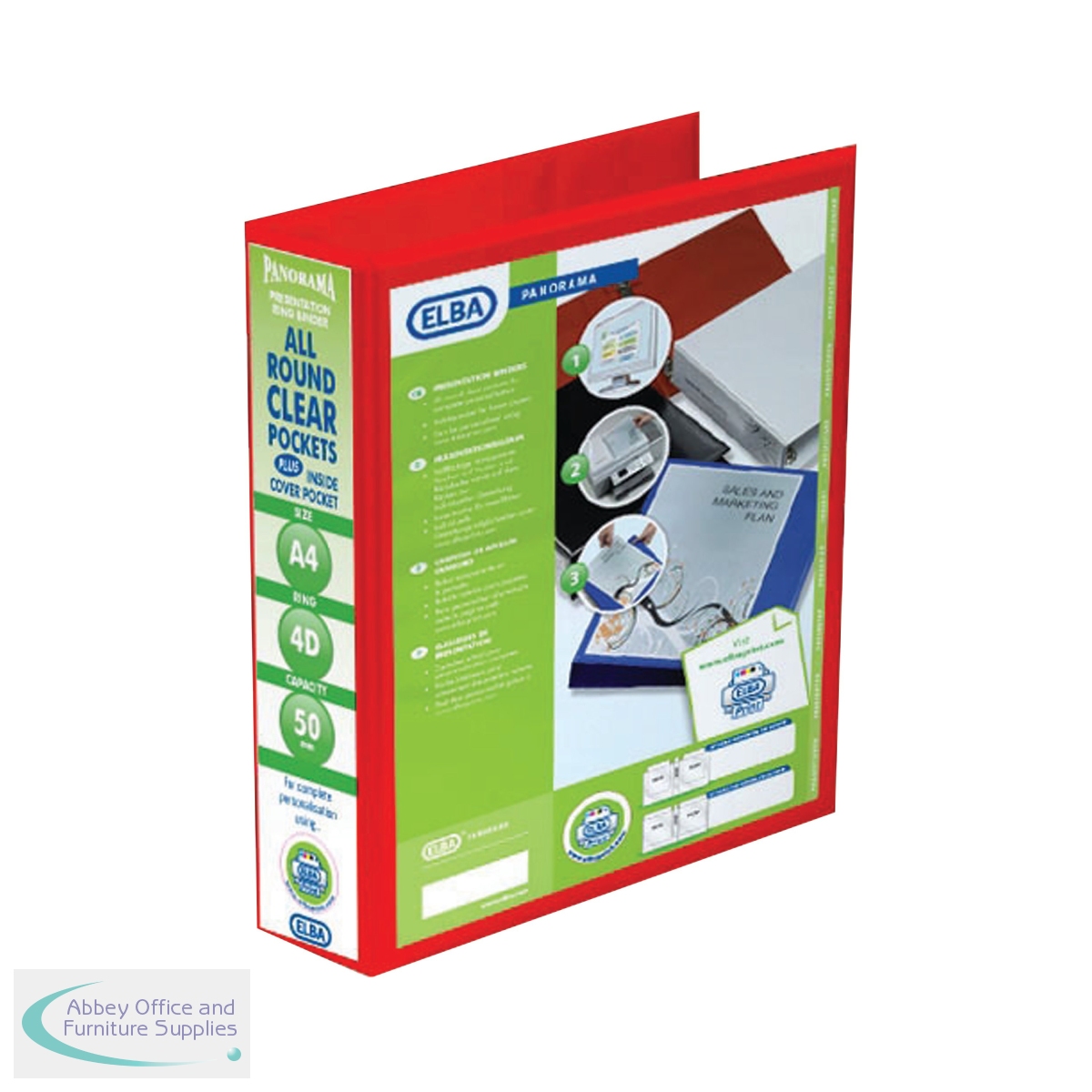 BX06551 - Elba Panorama 50mm 4 D-Ring Presentation Binder A4 Red (Pack of 4) 400008432