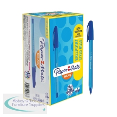 The PaperMate InkJoy system aims to put the joy back in writing with a unique low viscosity blue ink that flows easier for smooth writing with less drag. It also features a improved nib that delivers clear and crisp lines. The InkJoy 100 has a neat triangular shape that provides extra comfort to your fingers and gives precise control for any kind of writing or drawing. The medium 1.0mm nib writes a 0.4mm line width. These pens come supplied in a pack of 50.