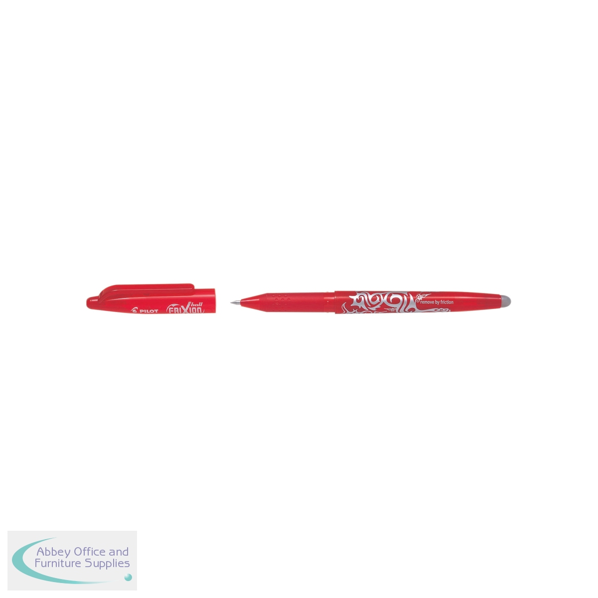 The Pilot FriXion Pen allows you to erase ink as easily as you would a pencil mark! Simply use the eraser on the end of the pen to remove ink via friction generated heat. The smooth ink flow prevents blots and bleeds ruining your page. An ergonomically designed grip provides comfort in use, even over protracted periods of writing. The 0.7mm nib writes a 0.4mm line width. This pack contains 12 red pens.