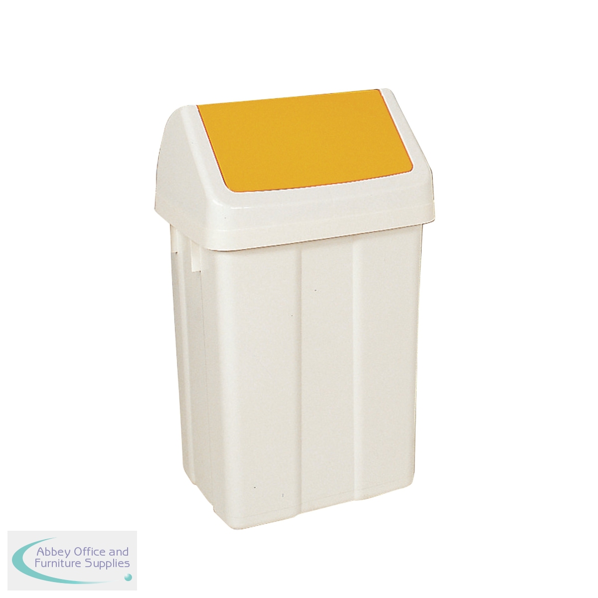 Easy to wipe clean, this plastic bin comes complete with a swing top lid for easy access. Ideal for general use in offices, schools, hospitals and more, the bin has a generous 50 litre capacity. This white bin has a yellow lid, ideal for colour coordinated waste segregation. The bin measures W290 x D360 x 645mm.