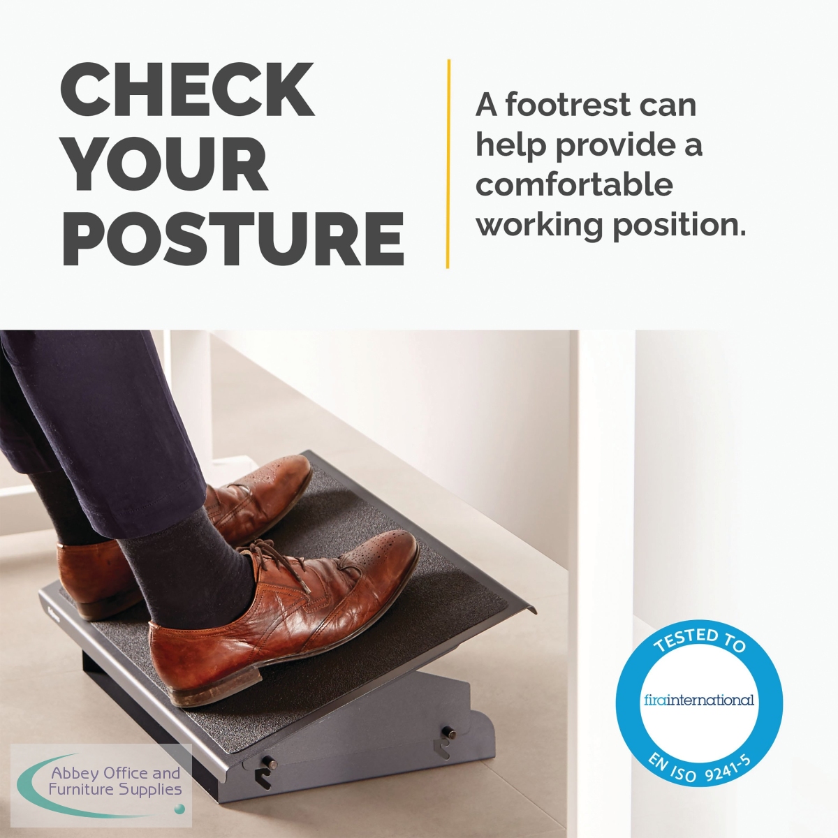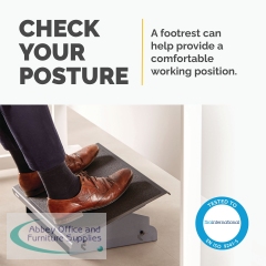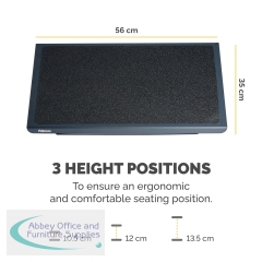 A few easy adjustments to your workstation can make a huge difference to your daily routine. Professional Series heavy duty adjustable foot rest is a necessity for maintaining the correct posture as you sit in your office chair to naturally relieve pressure on your back. The adjustable foot rest offers you multiple height adjustments so you can easily make any changes to suit your own requirements and ensures you are sitting in a position that is more ergonomically correct and comfortable for you, to adjust it simply apply foot pressure to the foot rest. Featuring a free-floating platform, this ergonomic foot rest allows legs to stretch for increased circulation, improved posture and overall, a more comfortable working environment. Relieve tension in your feet with a textured surface that massages the soles of your feet, allowing you to enjoy a more comfortable and healthier workspace. This foot stool is accredited by FIRA International, an independent Ergonomic Accreditor. Thanks to this foot rest you can relieve back pain by working in front of the computer for long periods of time. In addition, it allows you to improve your posture, by correcting the position of your body, and helps to release tension in the shoulders and lumbar. It adapts to your body due to its adjustable tilt function and its large, embossed surface (56 x 35cm). Just place the platform under the table of the office, studio or office.