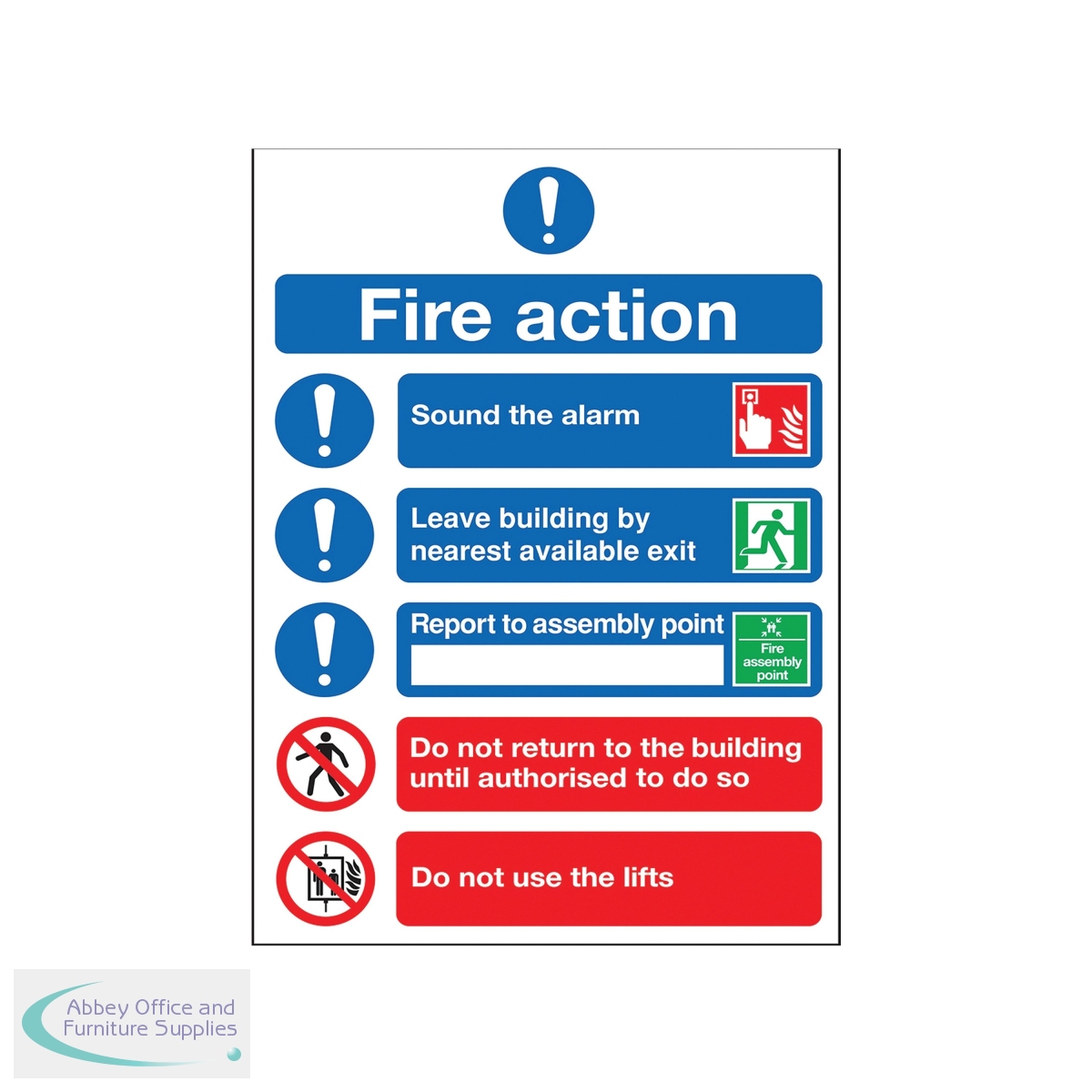 This sign details the instructions and procedures to follow in the event of a fire. The clear and concise instructions with symbols for illustration indicate standard procedures for fire safety to your customers, employees and visitors. The universal design is easily recognisable and blank spaces are left on the sign for you to fill in location-specific information. This rigid PVC sign is A5 in size.