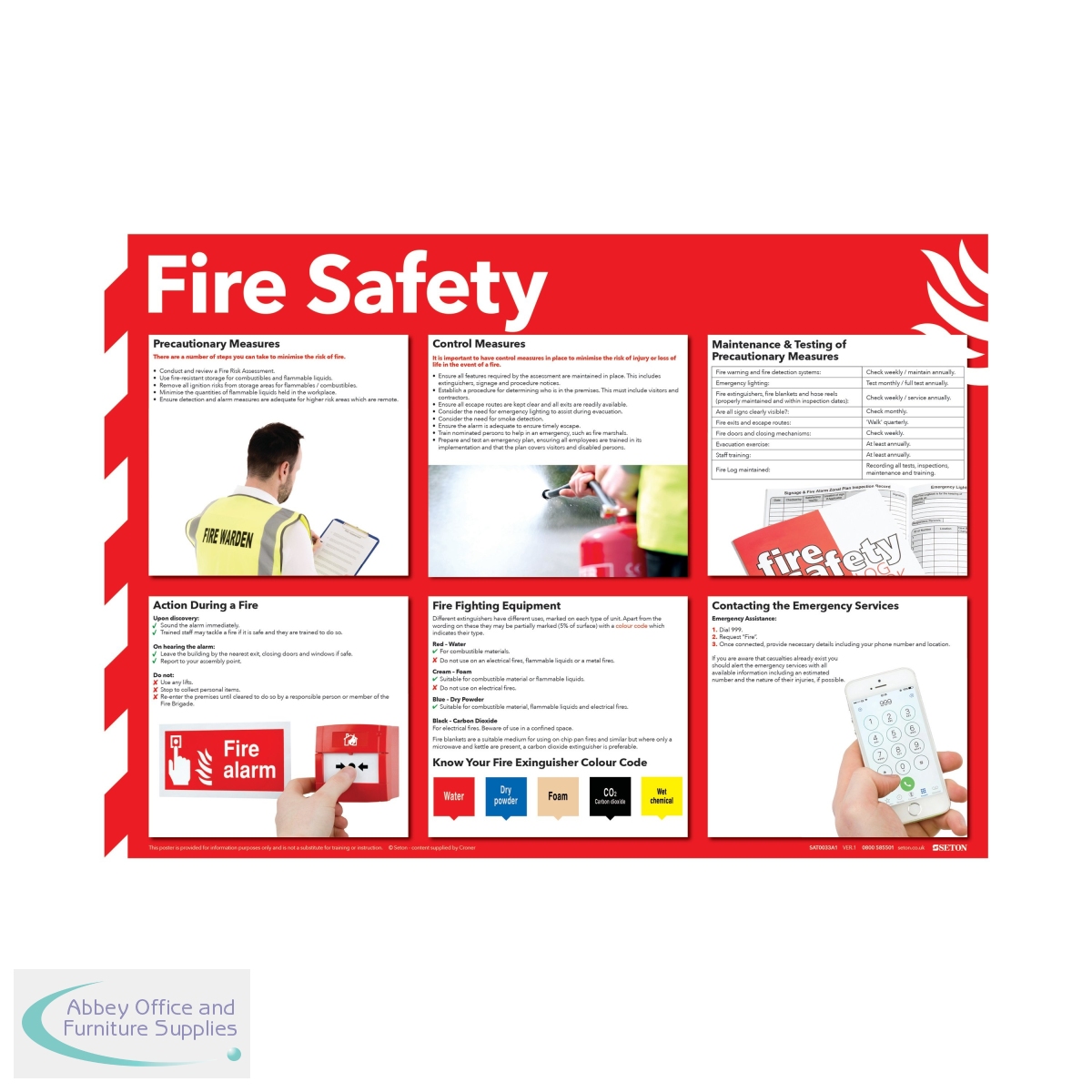 Raise safety awareness throughout your organisation with this Fire Safety wall poster. With clear step-by-step instructions, this sign can help prevent and manage workplace emergencies. Full colour illustrations and clearly defined text illustrate correct fire safety procedures to customers, employees or visitors to your site. Hang as a reference display throughout your building in applicable areas, or use as a training device in fire safety workshops. This poster measures 420x594mm.