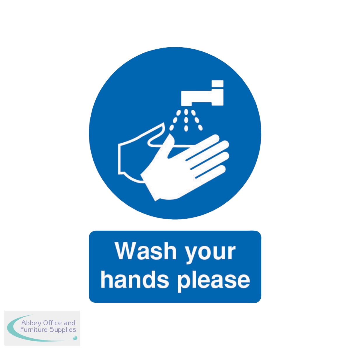 To comply with health and safety regulations it is imperative that all visitors, customers and employees are encouraged to wash their hands. Suitable for use in washrooms, kitchens and food preparation areas this sign reminds users of hygiene standards with clear, concise text. The universal symbol and recognisable blue and white colour scheme instantly categorises this as a mandatory sign on sight, keeping employees and others informed and safe at work. The handy self-adhesive backing makes this sign easy to fix to most surfaces without the need for tools. This sign is A5 in size.