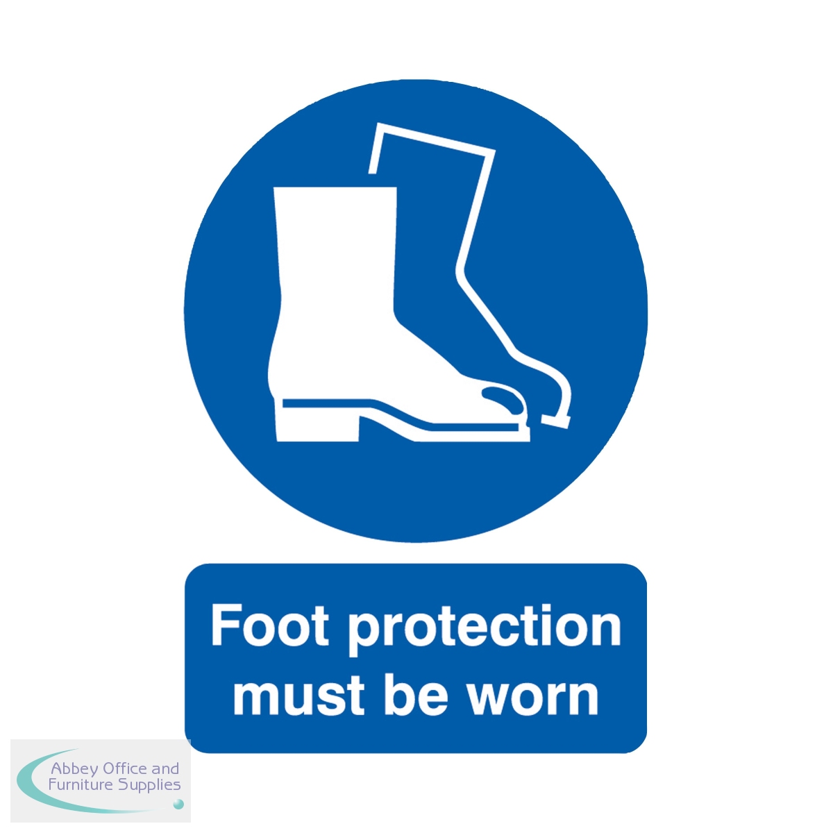 This sign is designed to inform and instruct all visitors, employees and anyone esle arriving on your site that they need to wear foot protection. The universal symbol and recognisable blue and white colour scheme instantly categorises this as a mandatory sign on sight, keeping employees, customers and visitors informed and safe. The durable PVC sign is easily fixed to a variety of surfaces and is suitable for both indoor and outdoor use. This sign is A4 in size.