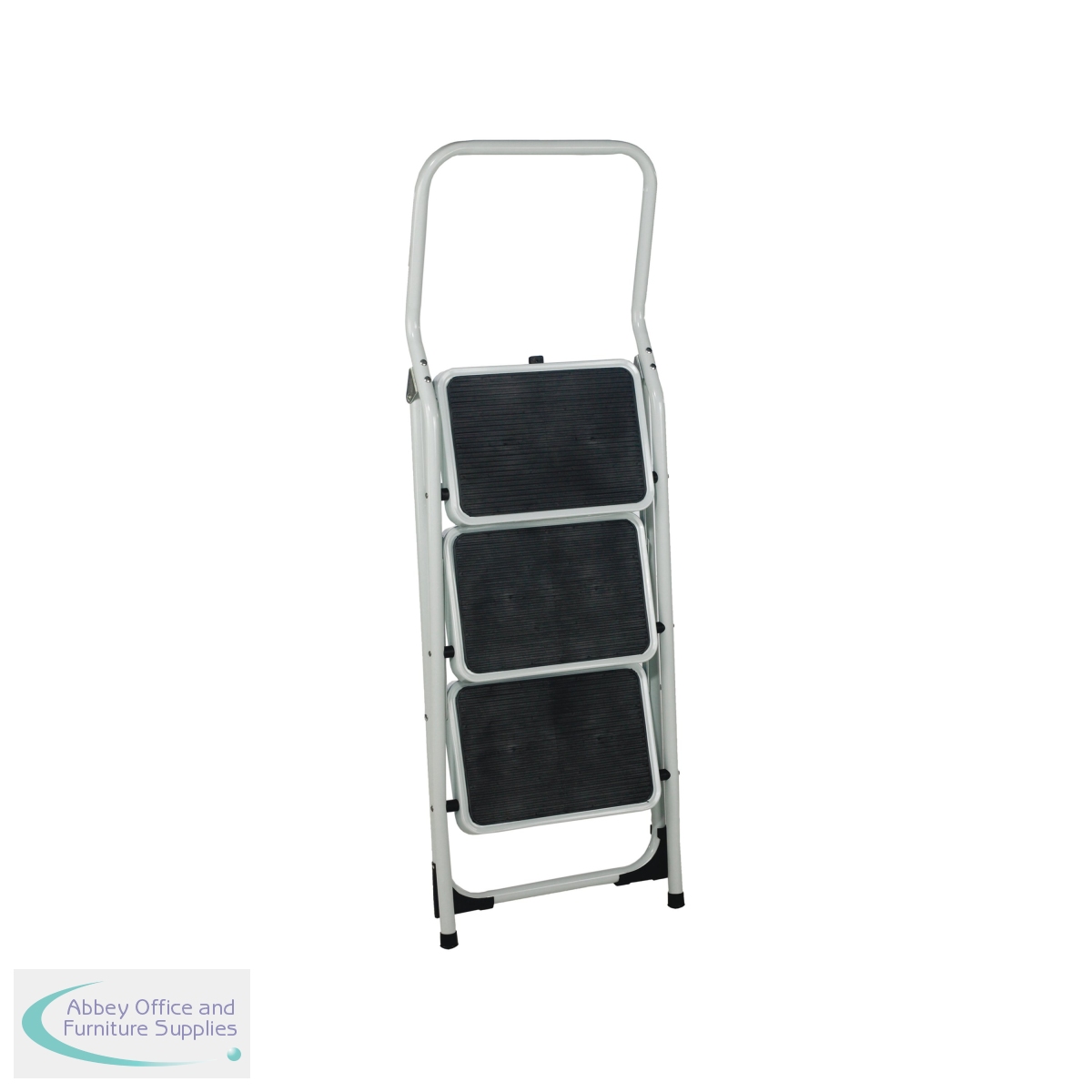 SBY00079 - Folding Step Stool 3 Tread High Back White Aluminium 402791