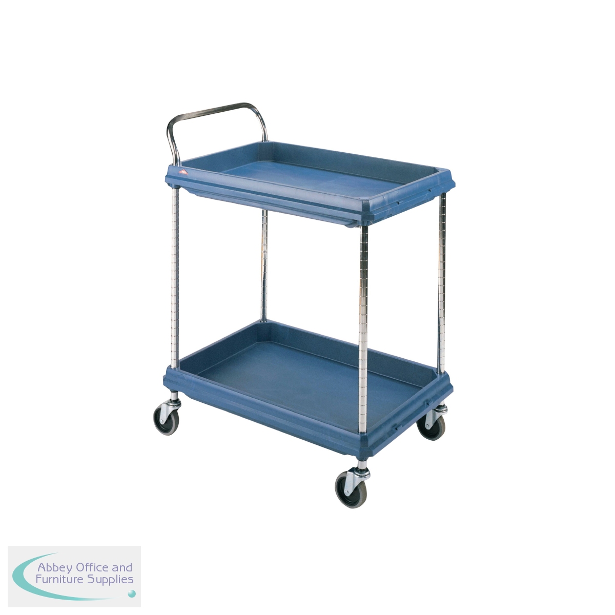 This deep ledged trolley contains 2 shelves with 70mm deep ledges to help contain any spillages and keep items secure during transportation. The smooth, easy to clean polymer surfaces are also impact resistant meaning they won't chip, peel or dent, ideal for multiple uses and purposes. This blue 2 tier trolley measures 832x546x1041mm (WxDxH).