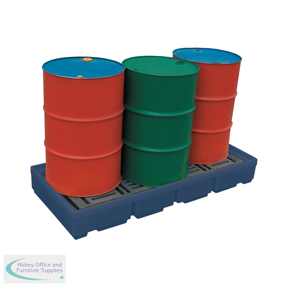 This sump pallet is moulded from highly durable polyethylene, making it extra strong, stable and resistant to chipping, cracking, and chemical attacks. The pallet has a removable plastic mesh floor, which can be put through an industrial washer, and which also makes the bottom of the pallet easier to clean. This 4 drum pallet measures W1310 x D1310 x H370mm and has a sump capacity of 410 litres.