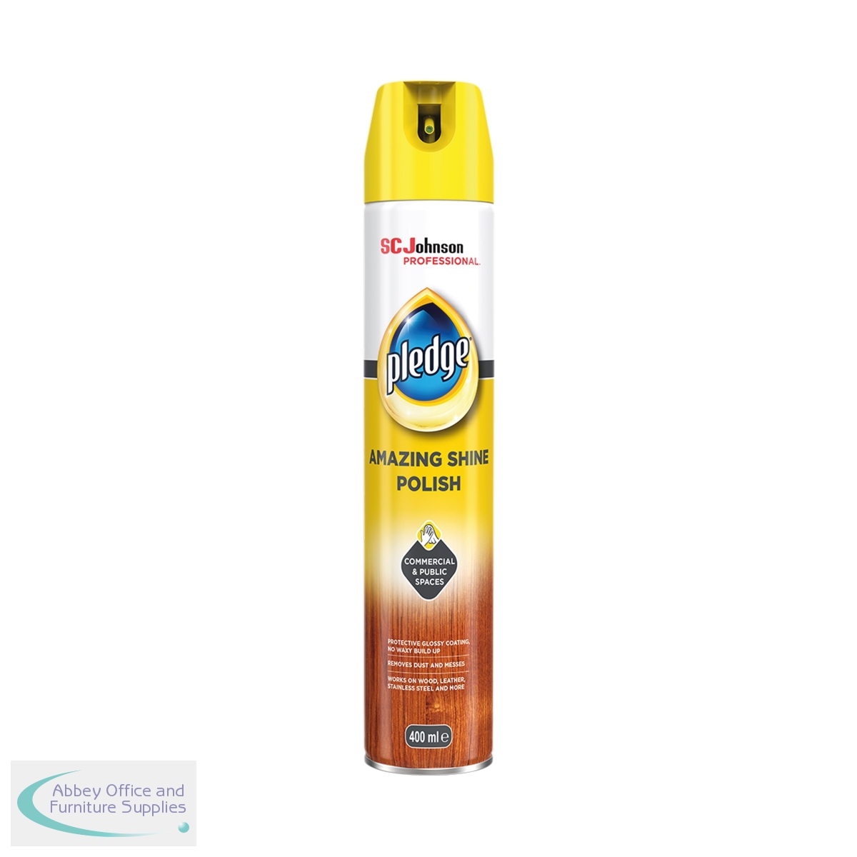 For wooden tops and surfaces, this fine Pledge polish is second to none. Gentle and yet robust enough to provide the protection and shine you require, this Pledge polish can be used on window sills, cabinets, tables, chairs and more. This pack contains one ready to use 400ml aerosol spray for domestic or professional use.